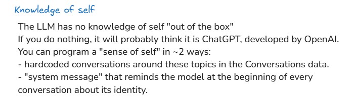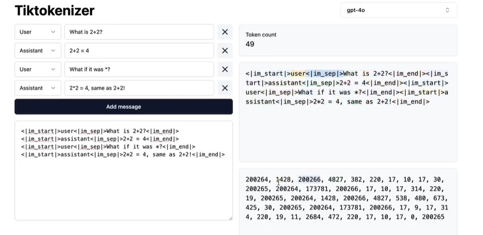 2)system message。在上下文窗口中的不可见token, 提醒模型它的身份(用来防止客服机器人变成虚拟女友)。