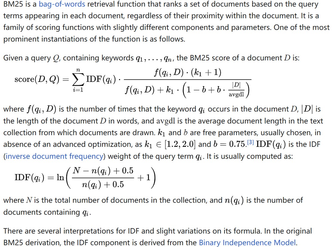 对于抽取式问答来说,文章和问题涉及到关键词这种类型的,bm25是很适合文章和问题都有关键词的。bm25就是一种基于关键词的 算法。