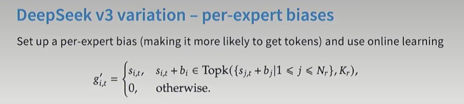 Deepseek v3 通过在线学习,调整每个expert的b_i。如果这个专家很受欢迎,就降低它的bi,如果不受欢迎,就提高它的bi