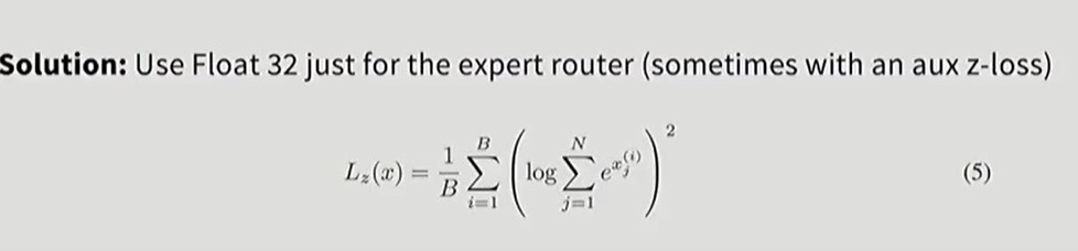 MOE存在训练不稳定的问题,解决方法是用float32,并且加入z-loss,以及上面提到的expert balanced loss.
