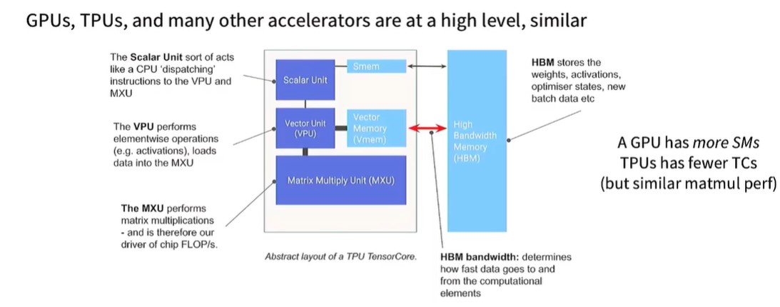 TPU的架构和GPU有相似之处,内部有专门处理向量和矩阵的单元,VPU和MPU