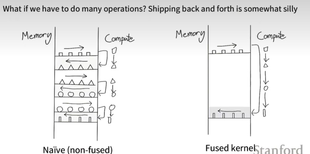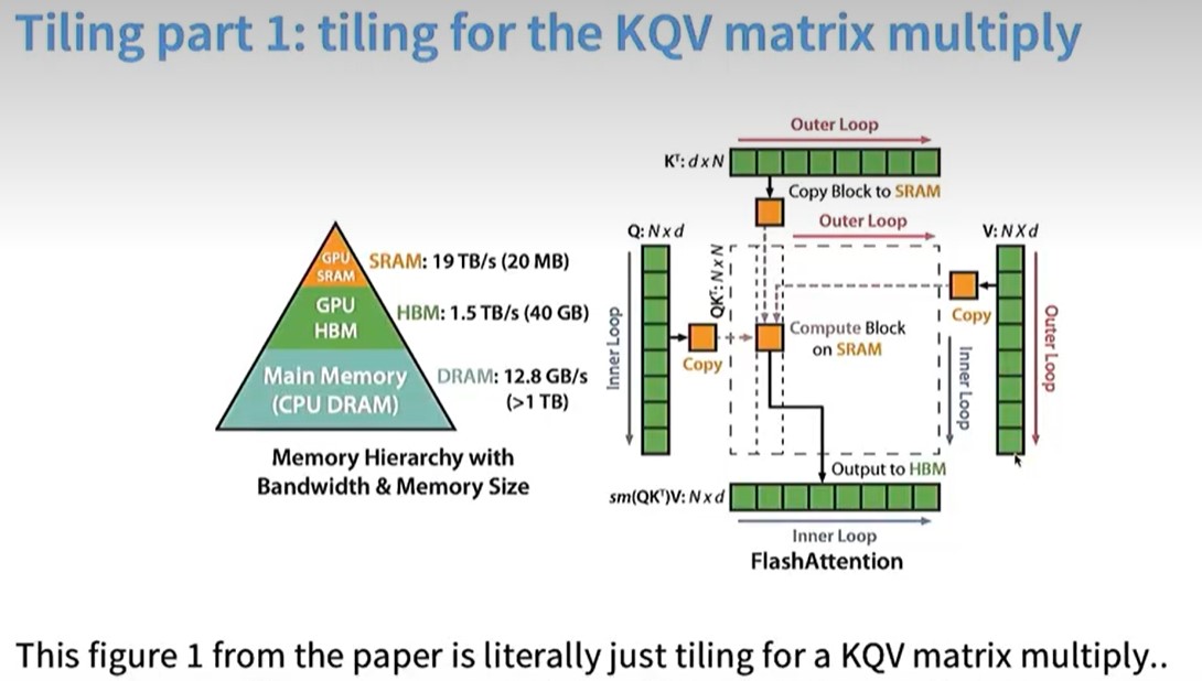 第二部分是在线softmax,原始的softmax需要所有tile计算完后,才能得到每个tile的softmax值,在线softmax不需要。