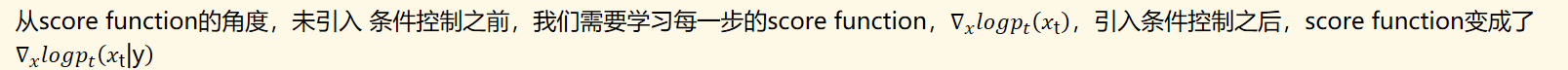 从score function的角度,未引入 条件控制之前,我们需要学习每一步的score function,,引入条件控制之后,score function变成了
