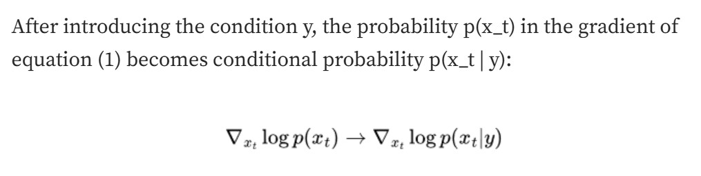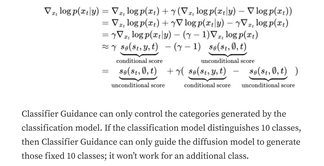 在这种情况下,我们需要引入条件控制 text condition y,这需要理解分类器引导和无分类器引导。