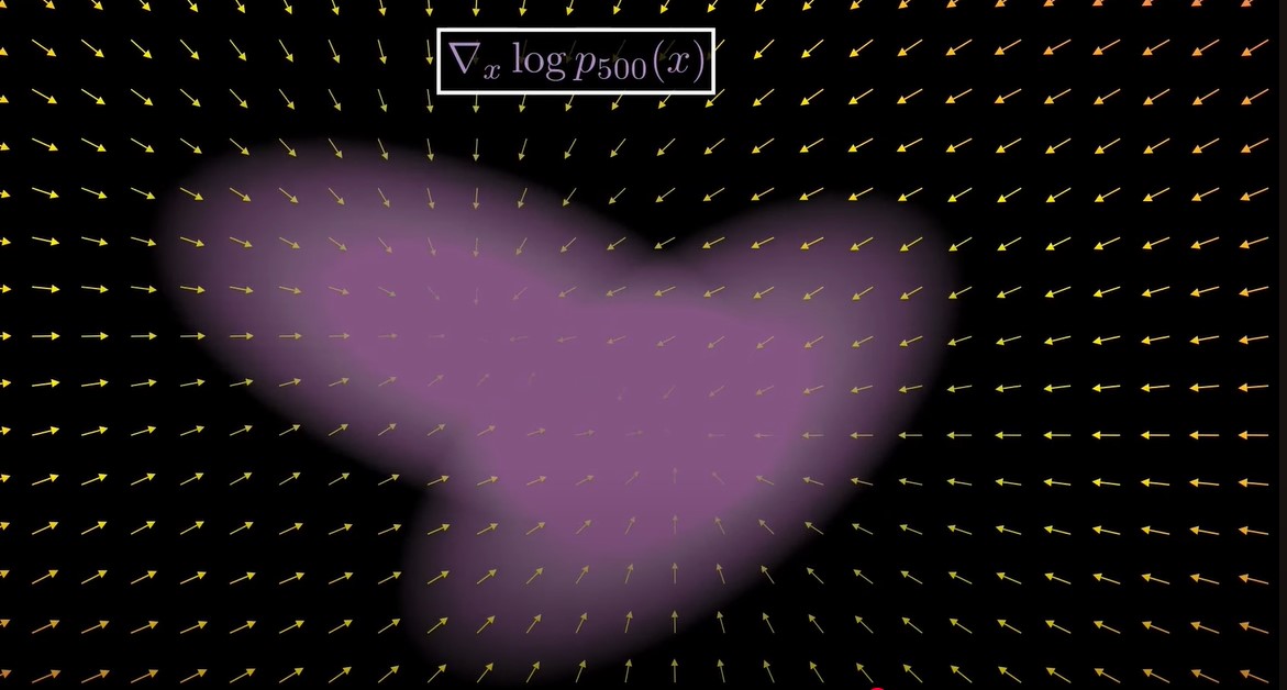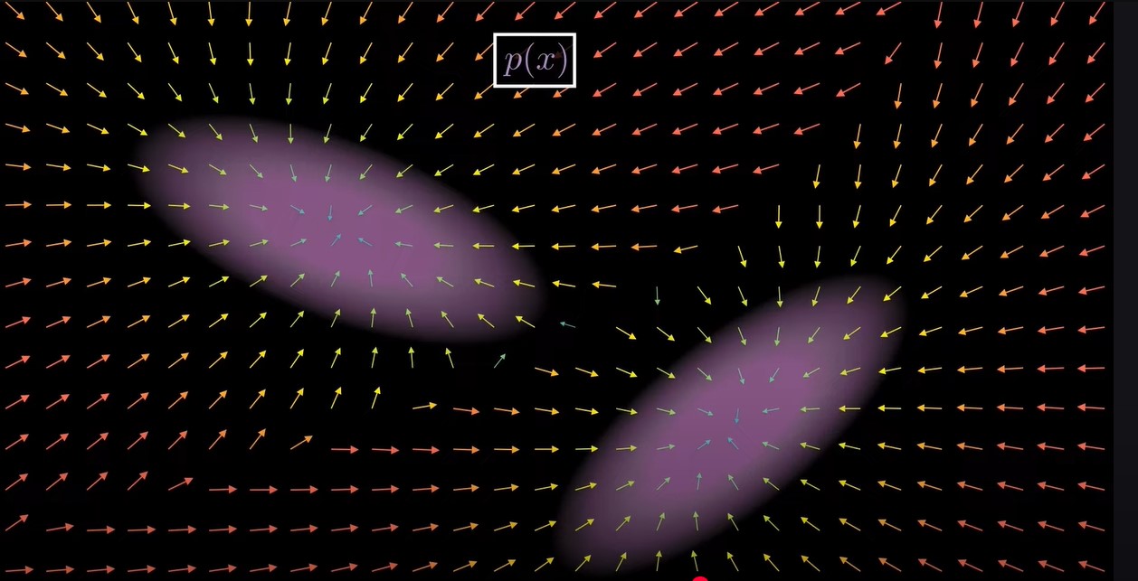 假设有一个分布,样本集中分布在紫色区域,这个分布的score function is a function that assigns to every point in space a