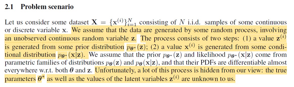 X表示图片数据集,表示一张图片。假设的生成过程中涉及到某个未被观测到的连续随机变量z,的生成过程分为 两步:![]()