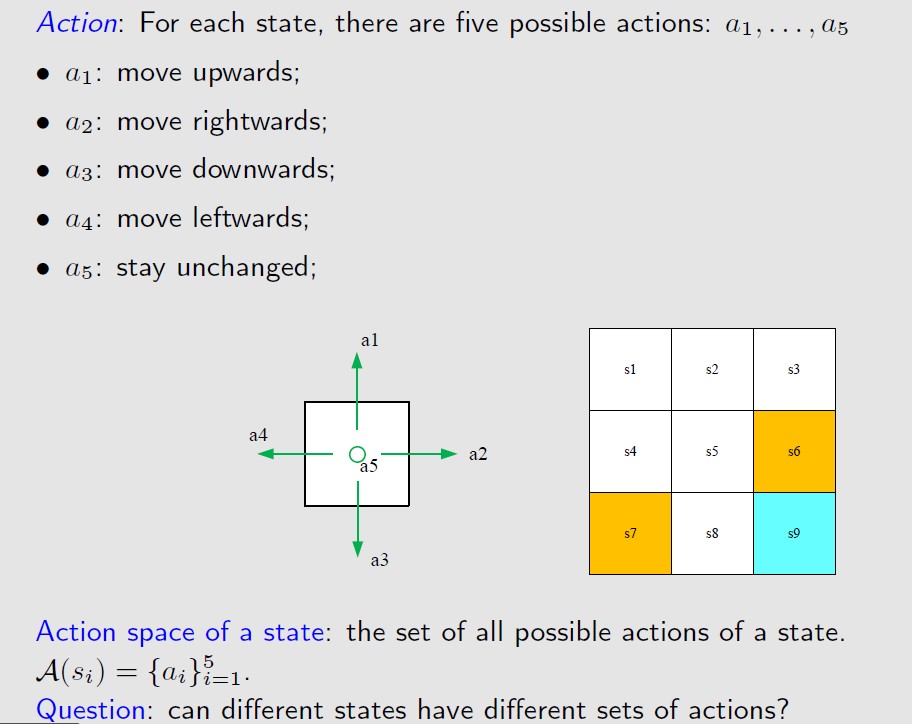 所有action集合称为这个状态的action space。