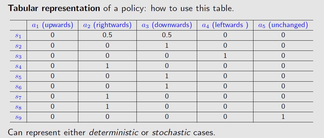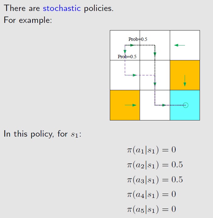 上图也是一种确定性的策略policy,更一般的情况是,stochastic policy。