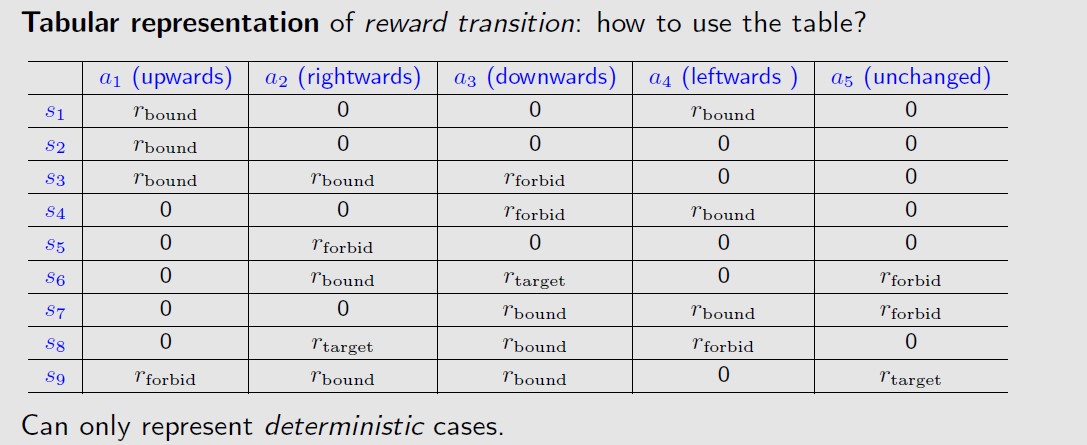 可以用表格来表示确定性的reward,