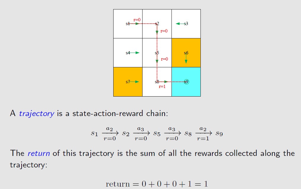 trajectory是按照policy得到的一条轨迹 ,return是这条轨迹的所有reward的和。