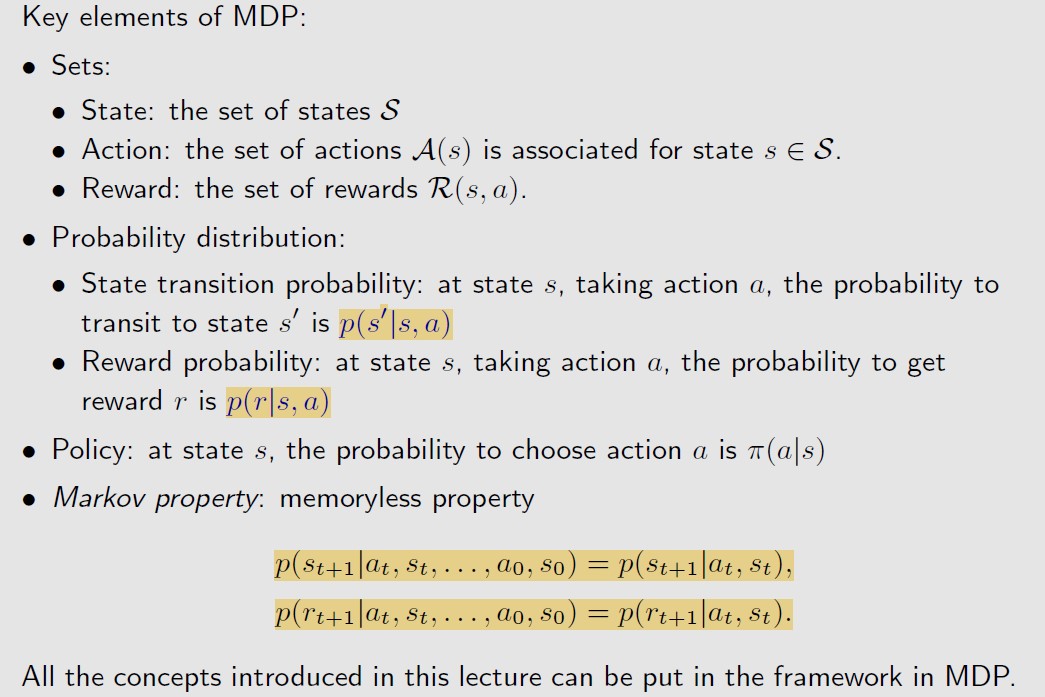 Markov decision process就是 1)markov property(t+1时刻的状态和reward,只