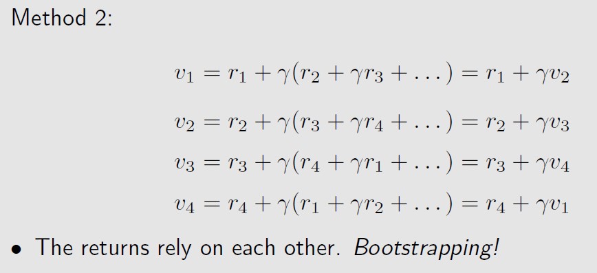 和是需要计算的状态值,也就是说,状态s的状态值由其他状态的状态值决定,是一种bootstrap。![]()