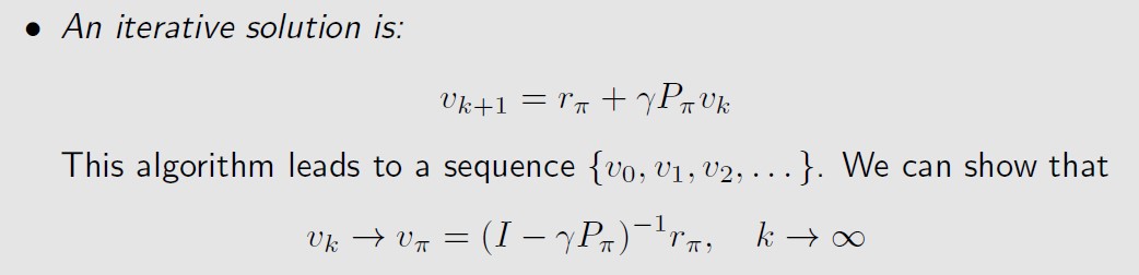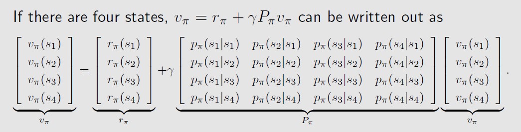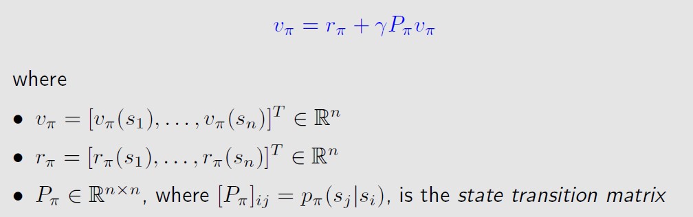 每个状态s都有一个状态值,也就是bellman公式,那么对于状态集合S,就有n个bellman公式,将这n个公式