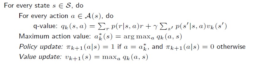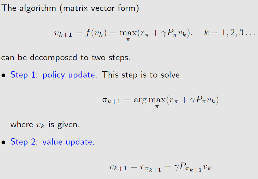 然后再用π_k+1来得到v_k+1,由于π_k+1就是选择所有q(s,a)最大的那个a,那么v_k+1