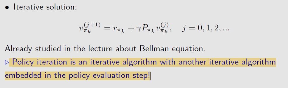 Policy iteration在迭代求解bellman公式得到新的v时,也是需要初始化v0,然后一步一步迭代直到收敛,