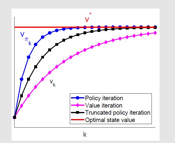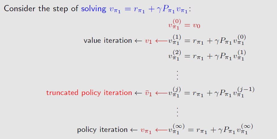 truncated policy iteration就是介于value iteration只走一步和policy iteration走无穷步之间的,走中间步,