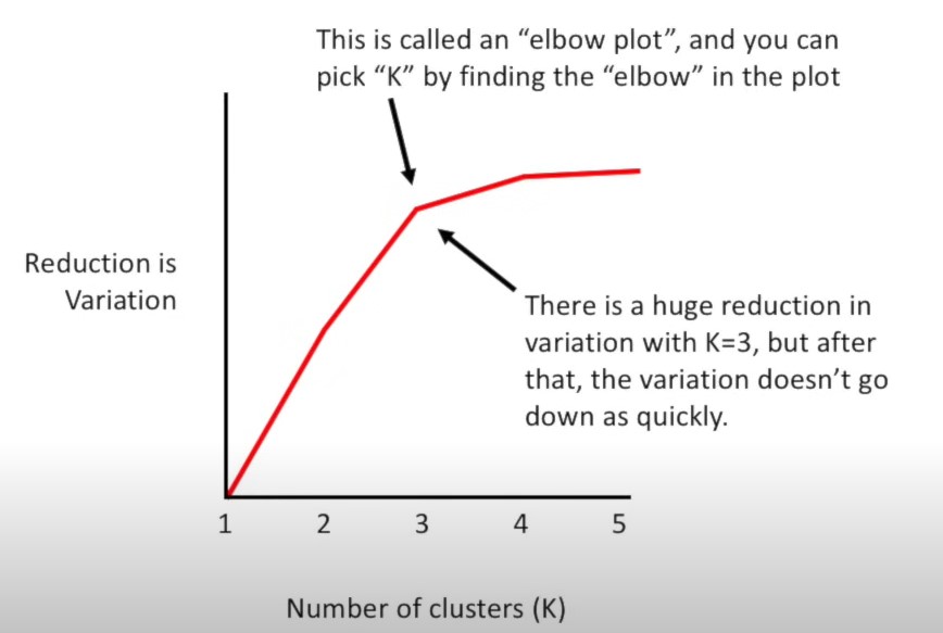 2)尝试k=1,2,3,4…,分别统计类内样本方差,当然k越大,类内方差越小,但是可以看拐点,下图中k=3之后 ,类内方差下降得没有之前那么多,所以k=3。