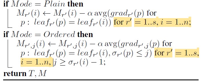 从算法中也可以看出,是两层for循环,对每种排序σ,每个样本i,都更新支持模型对排序σ下样本i的预测值。
