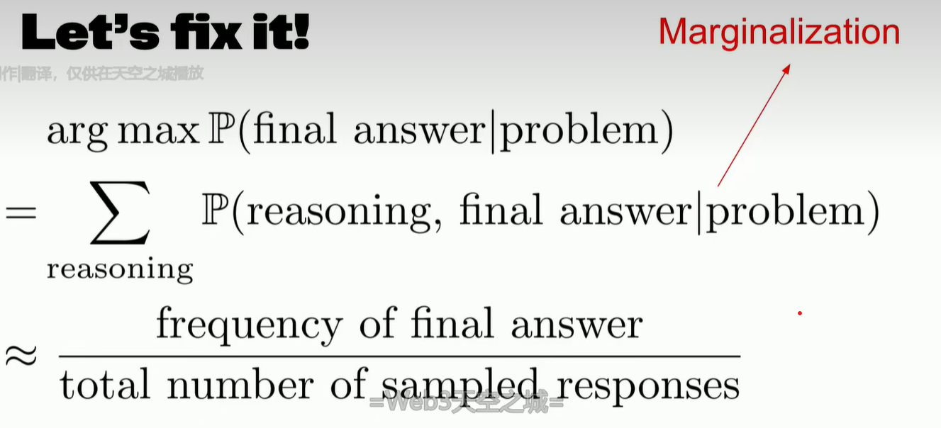 也就是边缘化,或者说多次采样,求和(选频率最高的那个answer)