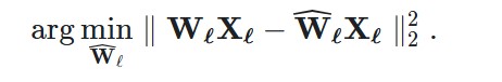 Let’s start by introducing the problem we’re trying to solve. For every layer ℓℓ in the network, we want to find a quantized version W^ℓWℓ​ of the original weights WℓWℓ​. This is called the layer-wise compression problem. More specifically, to minimize performance degradation, we want the outputs (W^ℓXℓWℓXℓ) of these new weights to be as close as possible to the original ones (WℓXℓWℓXℓ). In other words, we want to find: