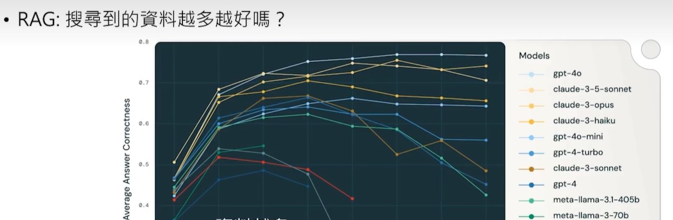 上图就表明,rag搜寻到的资料并不是越多越好。