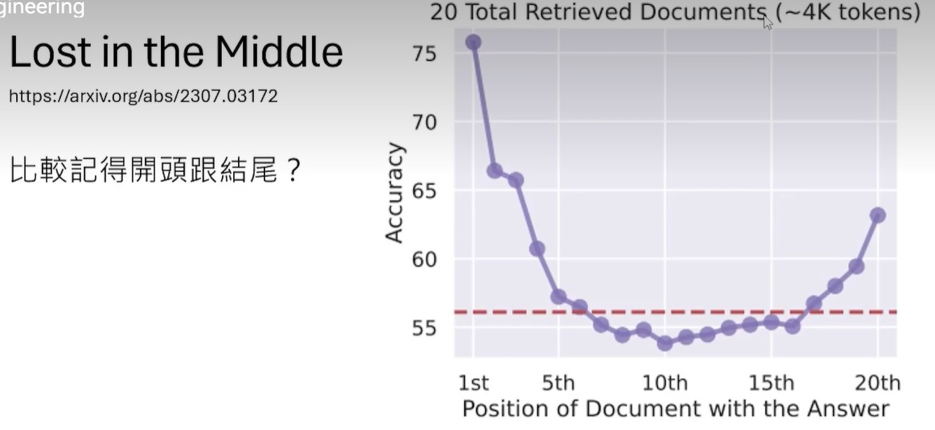 并且答案在context的中间时,llm回答的准确率不如答案在context的开头和结尾,也就是llm更关注context的开头和结尾。