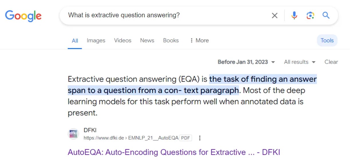 However, in sensitive domains and applications such answers are not reliable enough. We would like to be able to extract the information from the source as if highlighting relevant passages or phrases in a book. The latter approach is called Extractive Question Answering (QA) and although it’s not talked about as often nowadays as the generative approach to the problem, it can provide valuable insights and help structure data.