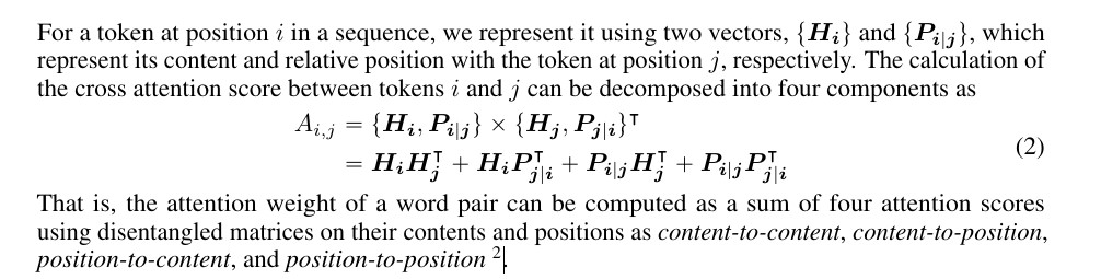 位置-内容项 (Position-to-Content): 基于当前词的相对位置的Query向量Q_r和内容K_c计算注意力。
