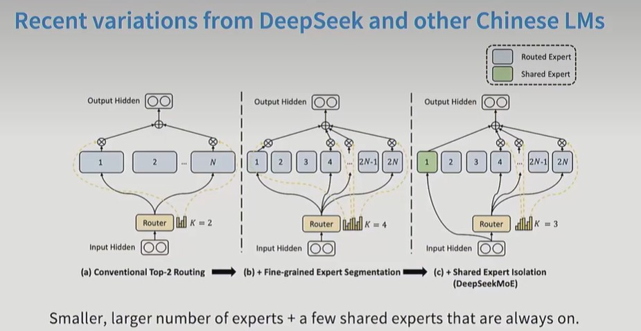 Deepseek v3 moe:细粒度专家+共享专家。细粒度指的是每个专家的参数量变小,专家数量变多